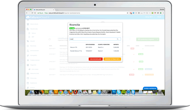 Con Fatture in Cloud importi l'estratto conto della tua banca e associ ogni movimento bancario alle fatture selezionate, saldandole automaticamente. Grazie alla compatibilità con oltre il 90% delle banche potrai importare i dati senza nessun problema.